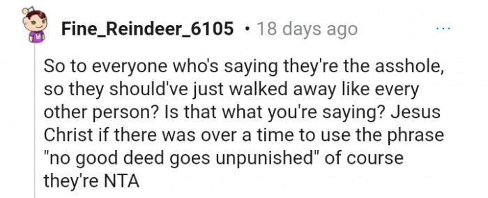 Unfortunately, not all kind gestures are appreciated, so don't always expect a "thank you" for helping others. Instead, you may be in for a rude awakening like this Redditor.