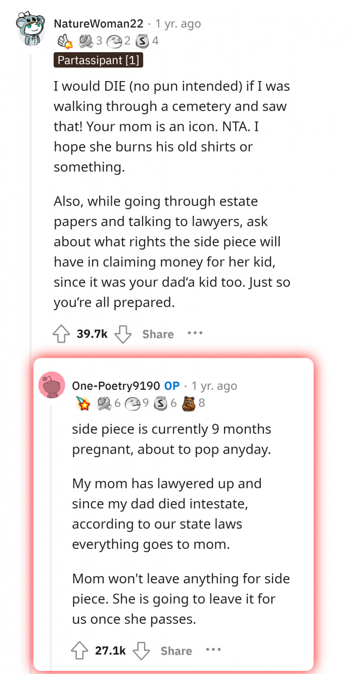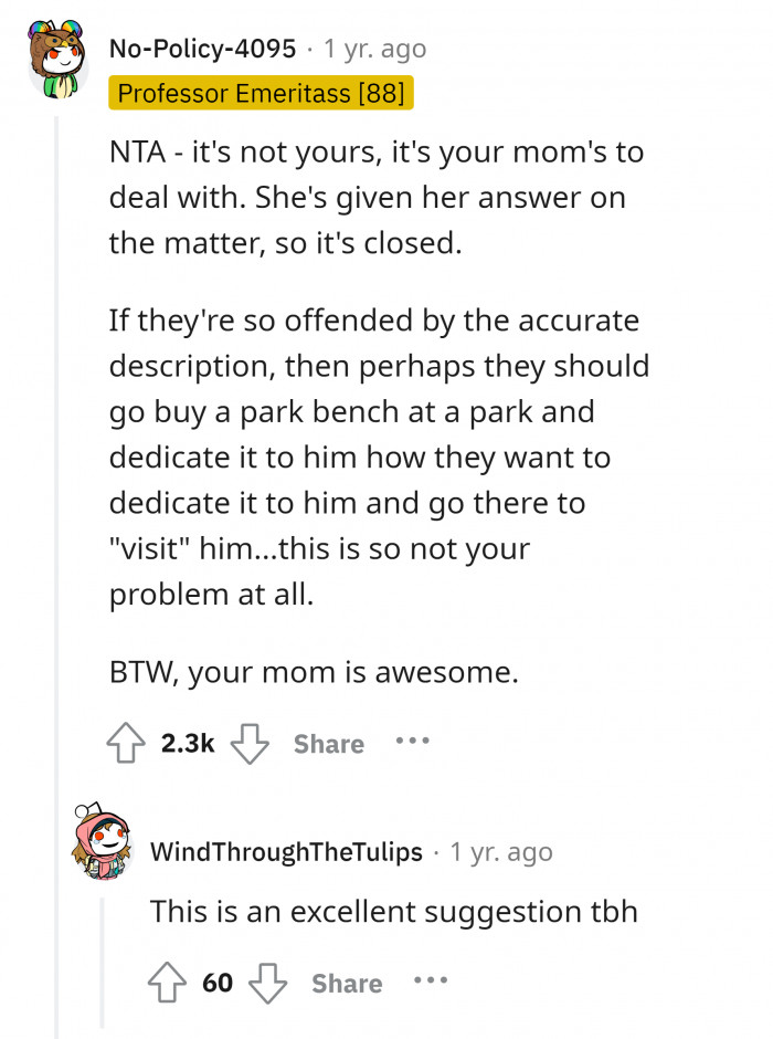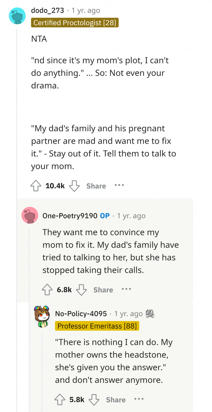 Reddit/NatureWoman22"There is nothing I can do. My mother owns the headstone; she's given you the answer."