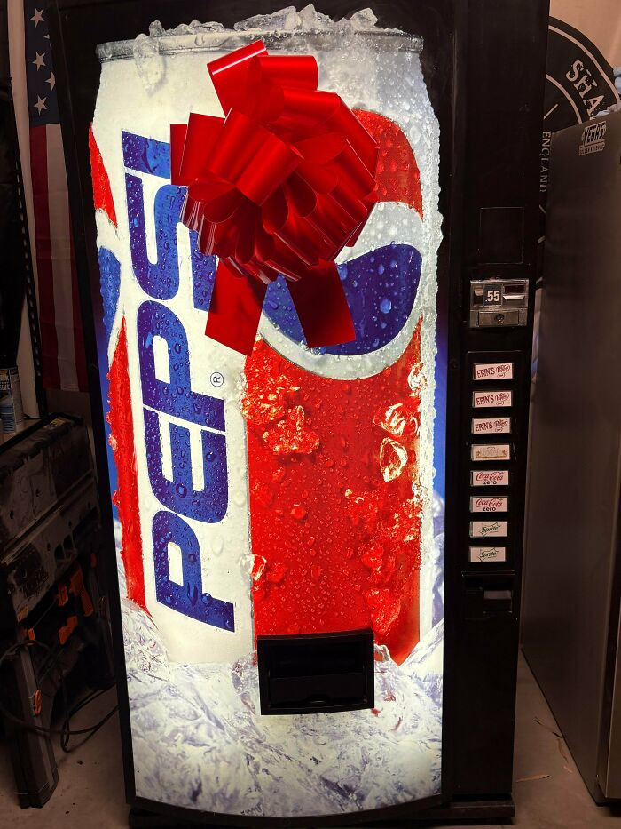 "My Husband Bought An Out-Of-Service Vending Machine And Filled It With My Favorite Drinks As A Christmas Gift"
