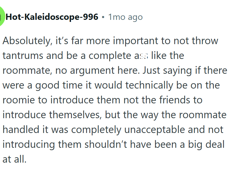 Online, reactions were divided but leaned heavily against the roommate’s behavior. Many argued that while hosts generally carry the responsibility of making introductions, yelling and belittling someone over such a small matter was out of line.