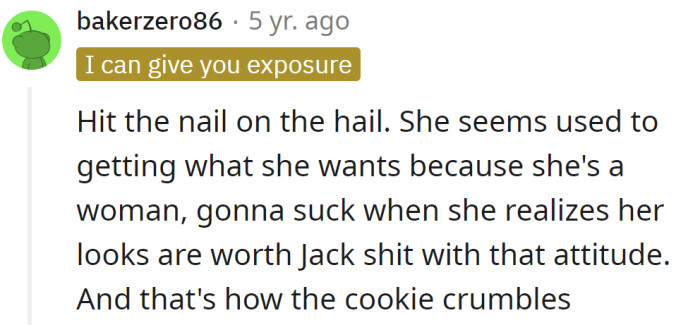 The OP drove her to work and never spoke to her again, despite her asking a few more times for a stay, believing that the OP owed her shelter because he owned a home. The OP eventually had to warn her that he would call the cops if she came to his home.