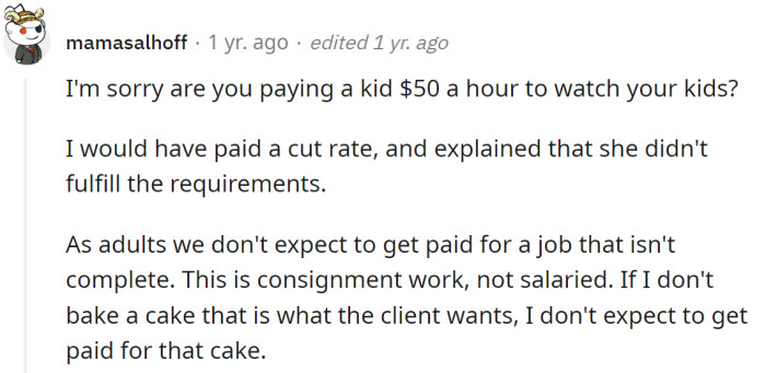 When one hires a service and it is not delivered as agreed upon, withholding payment is a logical consequence. However, the Redditors told the OP that she should have paid her something.