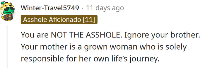 The OP Was Fine with Their Decision, but Their Brother's Comment Made Them Wonder Whether They Were Wrong: