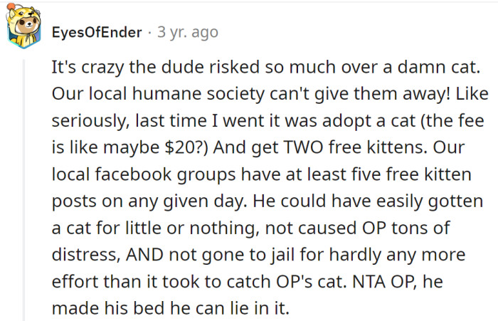 "It's crazy the dude risked so much over a cat."