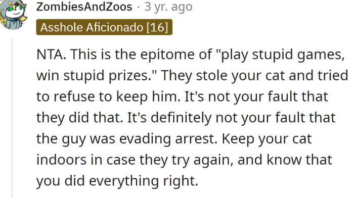 Redditor Gets Their Neighbor Arrested For Stealing Their Cat And Asks If They Were In The Wrong For Reporting Him