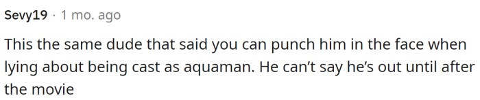 Rumors have been circulating that Momoa will star in a live-action version of the intergalactic bounty hunter, Lobo. When asked by Variety about the speculation, Momoa declined to confirm the news, simply saying that he may be playing other characters in the future.