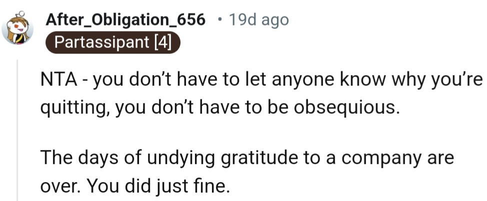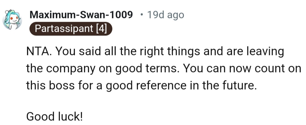 All OP could do now was remember to appreciate the journey before announcing its end. Because in the delicate dance of leaving a job, a little extra grace goes a long way.