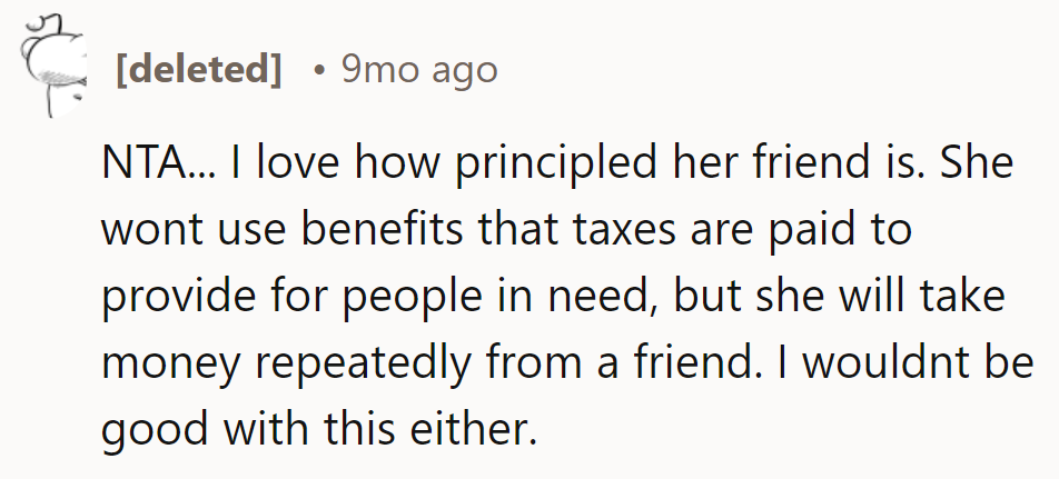 The man's unease is further amplified by the friend's refusal to claim unemployment benefits, an action that could alleviate her financial distress without burdening others. This situation highlights a critical lesson in benevolence: while it's vital to support friends, such support must encourage self-reliance rather than dependency.