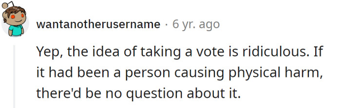 Redditors agreed that Dr. Ian Kerner, a sex therapist, emphasizes the importance of setting boundaries in relationships, stating, "It's crucial to communicate your needs and feelings clearly, especially in shared living situations." The OP could have reported the dog, which might have led to its removal. Instead, she opted for a more diplomatic approach by asking their mutual friend not to bring the aggressive service dog again. Regarding her roommate's immature reaction, Dr. Pat Love, a relationship therapist, suggests that "understanding and respecting each other's boundaries is essential for a healthy cohabitation." The roommate does not have the authority to dictate the situation, particularly since she was not the one who faced the aggression.