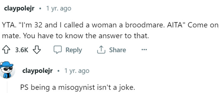 "Being a misogynist isn't a joke."