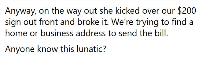 When the woman threw a tantrum and broke one of the restaurant's $200 signs, she probably didn't realize the online presence the business had.