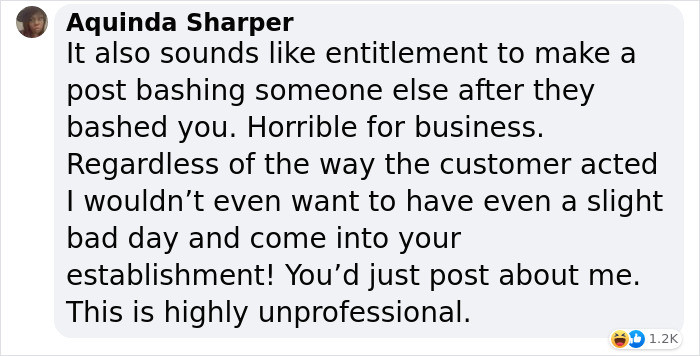 But for as many supportive comments the restaurant received, many people also disagreed with their retaliation.