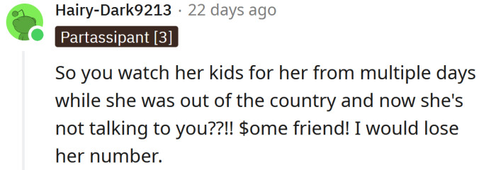 Now the OP's friend isn't speaking with her, so she's wondering if she was the a**hole here. Keep scrolling to see how people reacted.