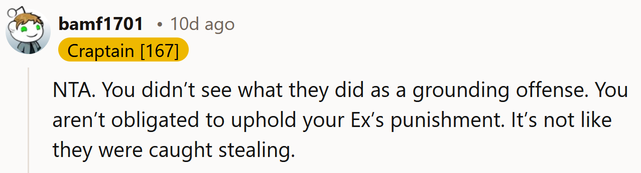 The Redditor's ex told her she needed to keep the kids grounded for the week.