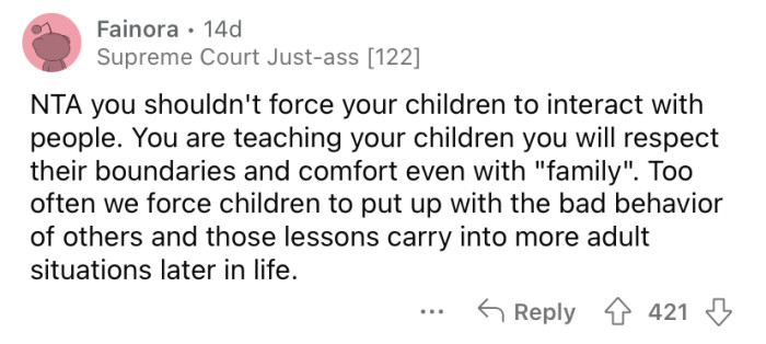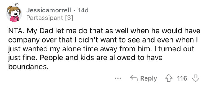 Surely allowing the kids to have a safe space to retreat is a good thing. After all, children are allowed to have boundaries too.