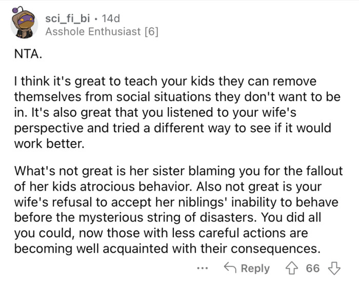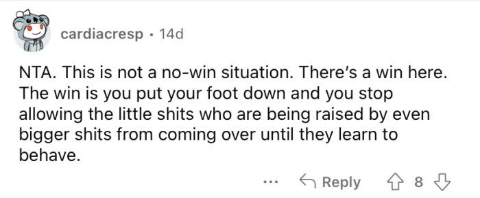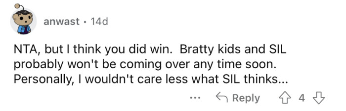 Well, disaster ensued! The Redditor couldn't even describe everything that happened, but his wife warned her sister that her children needed to behave themselves or they would not be allowed to visit again.