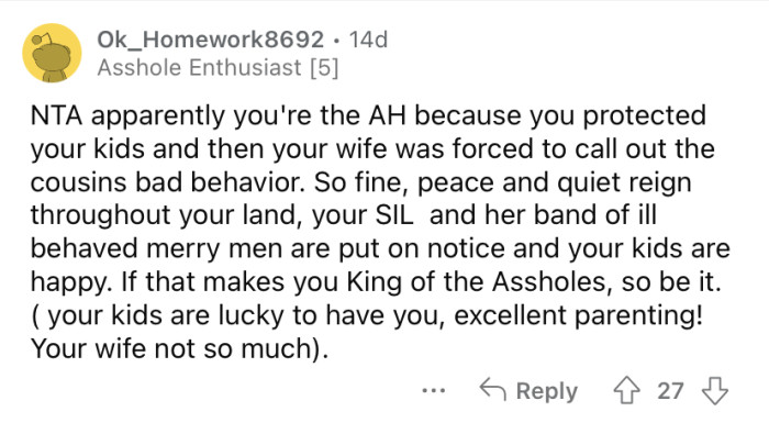 Reddit/Illustrious_Bike_214The OP says his children love their cousins, but their bad behavior can sometimes become a bit much for them.