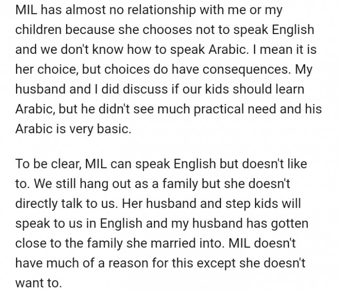 "After the revelation to the kids that she CAN speak English and is ignoring them, if she continues to do so... stop bringing them over"