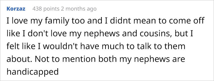 People on this forum rallied around him, pointing out that his aunt acted inappropriately. He added that his brother, who is 21 years old, remained silent throughout the argument.
