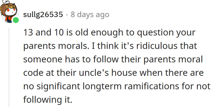 You can already sense what the matter is here, but let's see the rest of the story. The girls later revealed to OP's parents that they had tried non-vegetarian food at their uncle's house.