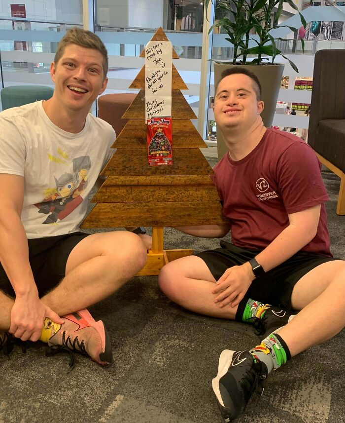 "My Friend Joe Made Me A Wooden Christmas Tree As My Gift For Christmas. My Heart Is So Full"