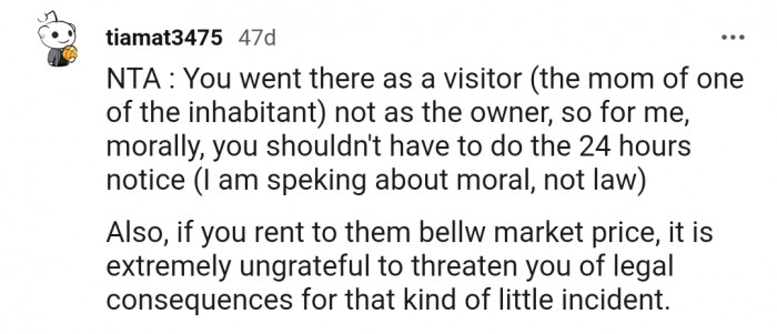 "You went there as a visitor, not as the owner, so for me, morally, you shouldn't have to give 24 hours' notice."