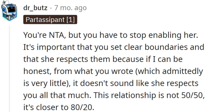 After hearing the OP's story, Redditors told him that he was not in the wrong for trying to set some boundaries. However, they also advised him to approach the matter differently.