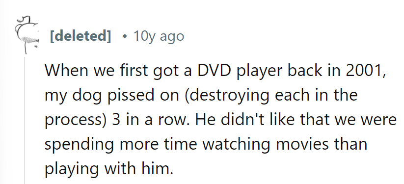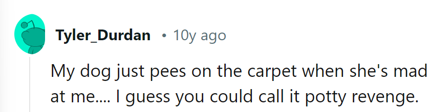Seems their dog's a master of "Pettyology"—specializing in passive-aggressive squeaky vengeance!