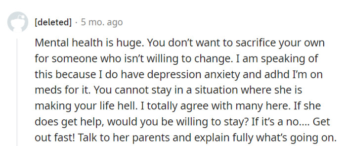 He yearned to help her, to witness her emerge from the darkness of her mental struggles. Yet, her refusal to seek outside help or medication became an insurmountable barrier, leaving OP with a haunting question: how could he salvage a relationship when his partner rejected the very lifelines that could mend their shattered connection?