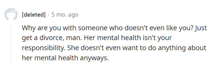 As he poured his heart out to the online community, he sought not only understanding but also a glimmer of hope, a signpost guiding him toward a resolution in the face of his wife's refusal to seek the help she so desperately needed. In the depths of his despair, he clung to the possibility of a future, desperately seeking answers to the unrelenting question: what could he do when love seemed to wither amidst the storm of mental health struggles?