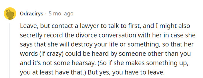 Caught in this cyclone of emotional turmoil, OP grappled with a profound dilemma. His love for his wife had become entangled with his self-preservation instinct.