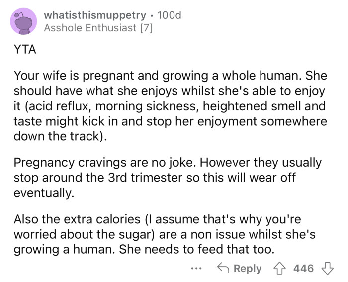 "She asked if she’d replace it 'plus a few, since she’s pregnant and craving it,' and I said no because it’s high in sugar."