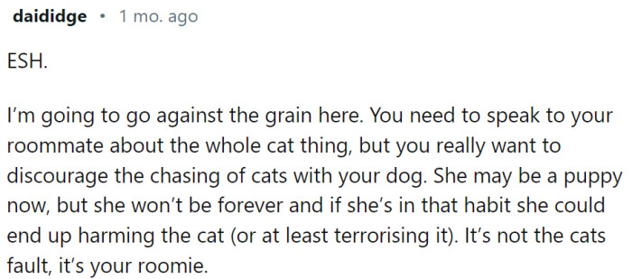 RedditOP now lets her puppy chase the cat out of the room but actually feels sorry about that