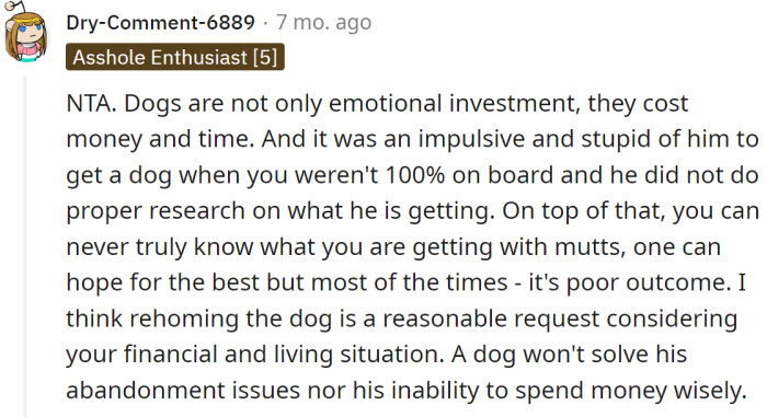 Redditor Accuses Her Husband Of Living In Poverty Because He Wouldn't Rehome His Dog