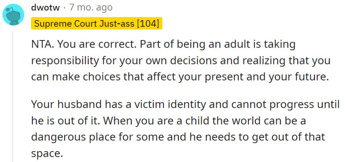 RedditShe said her husband got better with the help he receives in therapy, but he still occasionally has moments of negativity: