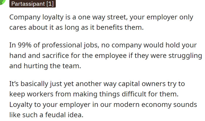 "Company Loyalty Is a One-Way Street; Your Employer Only Cares About It as Long as It Benefits Them."