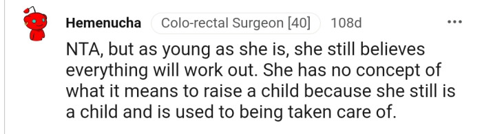 "She has no concept of what it means to raise a child because she still is a child and is used to being taken care of."