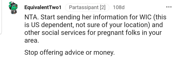 "NTA...Stop offering advice or money."