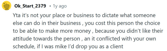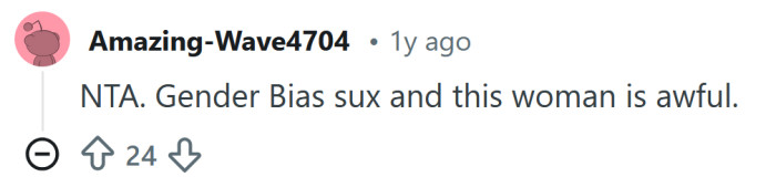 My ex and I share custody of our 9yo son Caleb. He had ODD and ADHD when he was 5. It was so bad that he got kicked out of summer camp and went through multiple sitters all before he was 6. His mom and I worked so being a SAHP wasn't an option. A few summers ago, we found our unicorn sitter- Mike. We have no idea Mike makes it work but he does. Caleb has been a different kid ever since Mike started working for us. He is so well-behaved, polite and social. Mike is like his best friend. We joke that Mike is Caleb's executive assistant. Earlier this year Caleb became friends with a classmate named Luke. They wanted a sleepover playdate and everything was good until we said that Mike would pick up both boys, bring them to my place, go to the pier and then back home to go to bed. Luke's mom flat out said she wasn't comfortable with a male sitter. I laughed because I thought she was joking. She wasn't. She said it was too weird for a male to babysit and wasn't cool with it. I said she didn't need to explain herself and there would be no playdates with our kids outside of school. She wasn't expecting that. I told her if she's not okay with a male caregiver then she probably wouldn't be okay with Luke spending the night at my place since I'm a single dad. I pointed out that she was the first parent to have a problem with this and Mike occasionally works for other families at the school. She was offended that I was offended. I ran into Luke's mom who said she needed a sitter for a couple of weeks as her old sitter quit and the new sitter wasn't free until mid-September. She then asked if Mike would be free. She even said she would need an overnight. I said you can't be serious. You said you didn't trust Mike and now you want him to watch your son so you can have a social life? I admit that it took guts to ask. I told her no, we will not share our nanny. You said that it was sus when a guy has a childcare job. She said she was joking and that Mike is a nice guy. I said I know he is but you can't use him. For the record, the days and times that she needed him are days where he is working for us. She would had paid him on top of what we pay but Mike would be at Luke's house or his place. My ex and I don't mind Mike double dipping on sitter fees by watching more than one kid because he can make a lot of money and Caleb gets a playdate. This was an exception where I did her a problem.Here's how the Reddit community reacted.