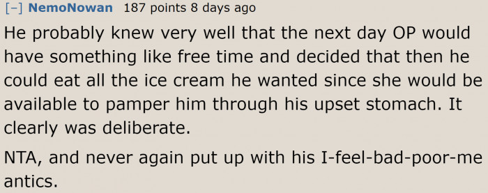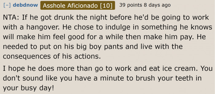 According to the woman, she didn't have time to take care of a sick person because of her schedule for the day. Her husband was already feeling better after she helped him get through this self-inflicted man cold.