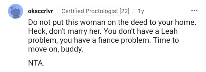 "You don't have a Leah problem; you have a fiancée problem. Time to move on, buddy."