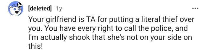 To add insult to injury, Leah was fond of taking OP's property without permission. The breaking point was when Leah used OP's garage code, which she obtained from Erica, to steal his prized golf clubs for her boyfriend.