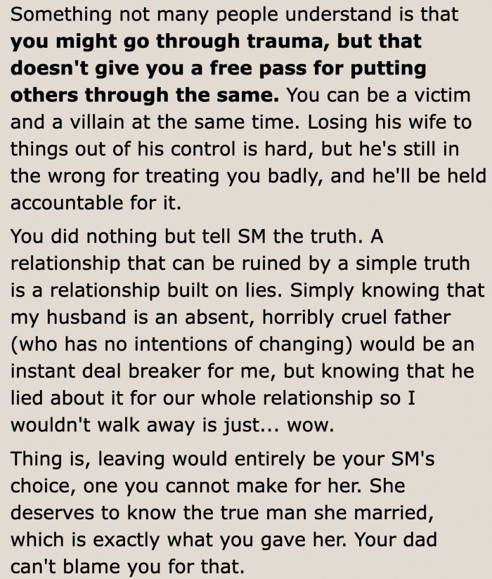 Man Tells His Stepmom The Real Reason Why He Isn't Close With His Father