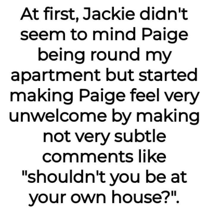 The man confronts Jackie after she makes Paige weep, and she is ultimately ejected from his residence