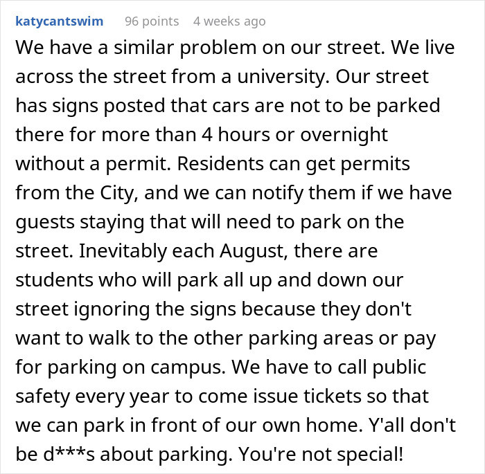Read the full story for yourself and let us know what you think about what happened. Have you ever had someone block your driveway before?