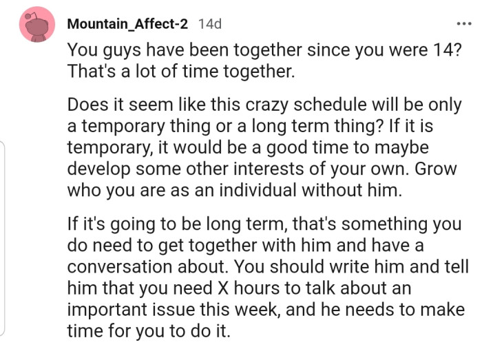 The Reddit community resonates with OP's plight and has offered a diverse range of opinions on this matter. While some advised patience, others urged her to seek open communication, emphasizing that connection and understanding are key to weathering the storm.