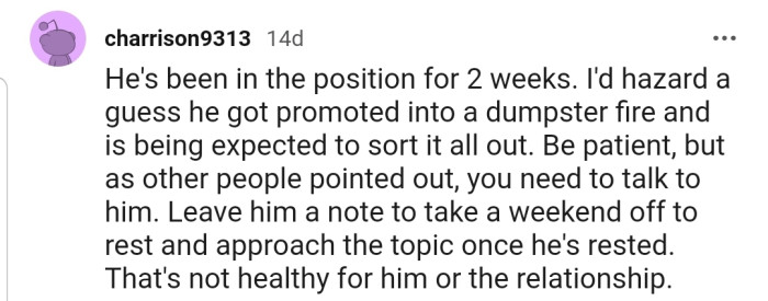 "I'd hazard a guess he got promoted into a dumpster fire and is being expected to sort it all out."