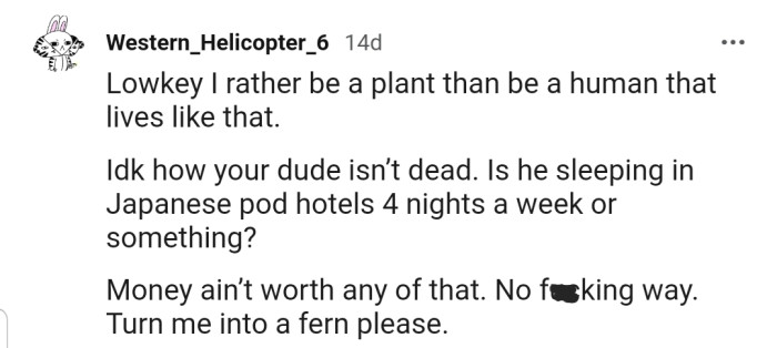 "Lowkey, I’d rather be a plant than be a human that lives like that."