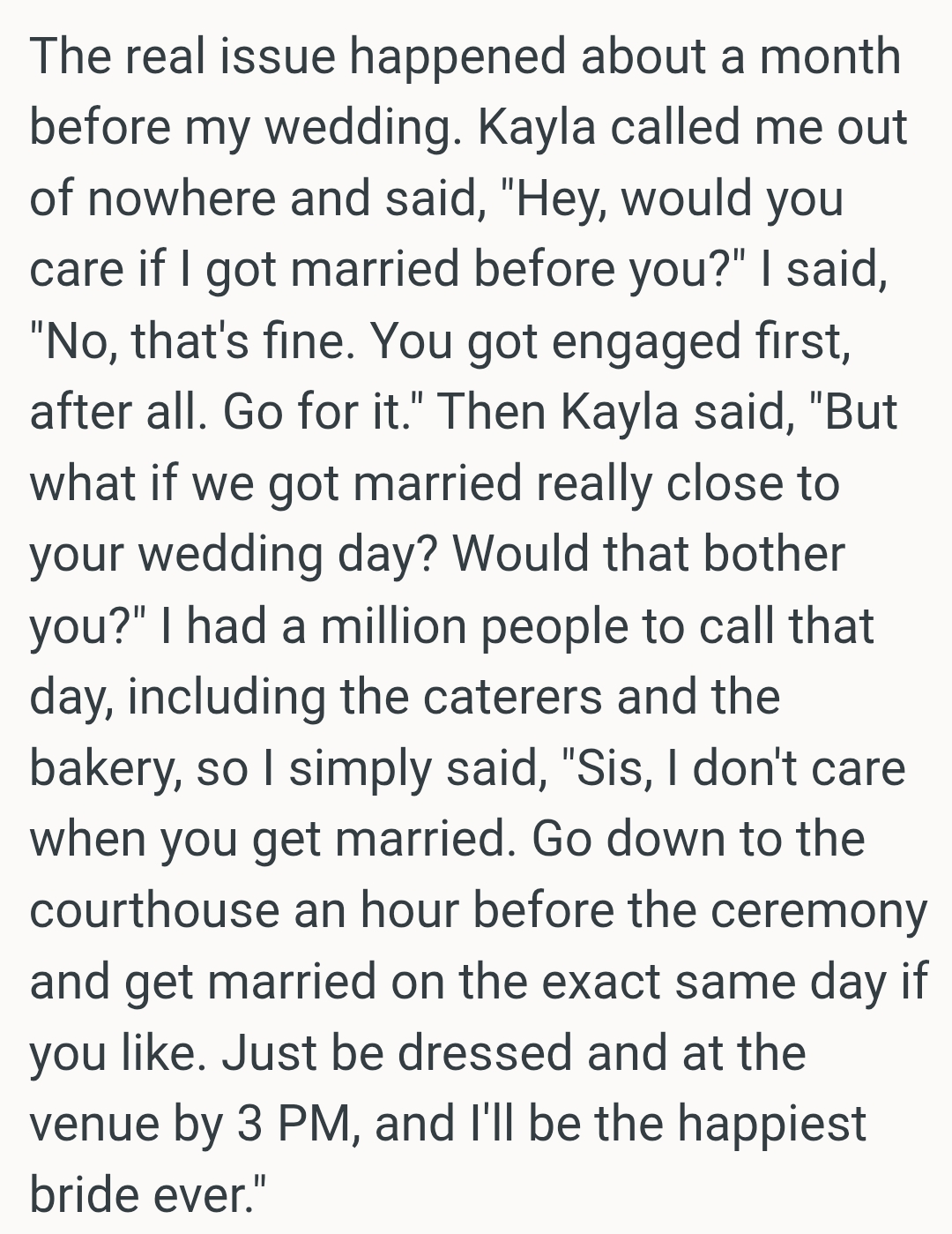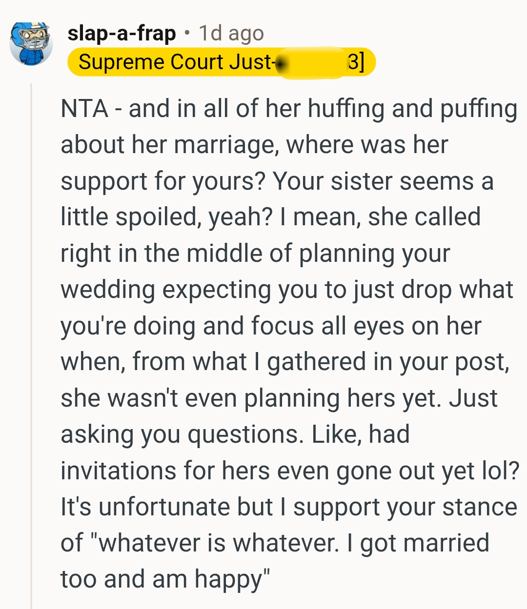 I'm the AH because I quite literally told my sister I don't care when she gets marriedAnd the comments roll in...