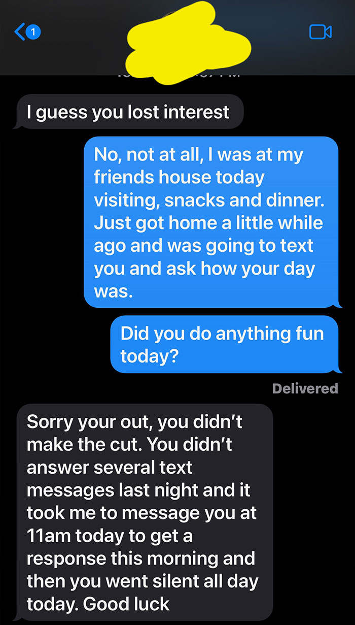 "My Now Ex Boyfriend Has Been Sending Me Texts Non Stop. I Sent Him A Message Saying Me Moving Out And Us Breaking Up Is For The Best, And This Was His Response"